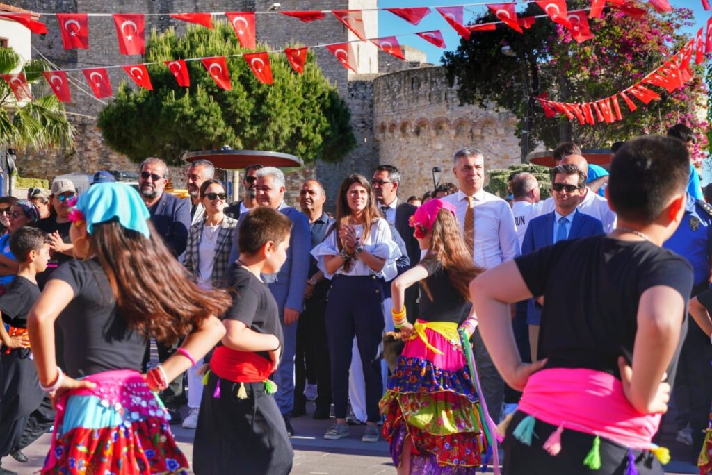 Cumhuriyet Meydanı’nda sona eren kortej yürüyüşünün ardından açılış töreni, saygı duruşu ve İstiklal Marşı’nın okunması ile devam etti. Çeşme Halk Eğitim Merkezi Halk Oyunları ekibinin sunduğu gösterinin ardından açılış konuşmaları gerçekleştirildi.