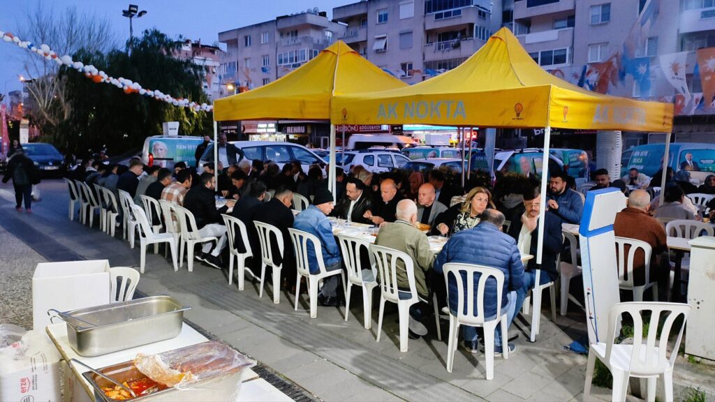 Buca’daki Forbes Sevgi Yolu Fil Heykelleri girişinde bulunan AK Parti Buca İlçe Seçim Koordinasyon Merkezi Başkanlığı ile AK Parti Buca İlçe Başkanı İbrahim Şengöz öncülüğünde Ramazan ayının ilk günü iftar programı düzenlendi. AK Parti İzmir Milletvekili Şebnem Bursalı’nın yanı sıra Cumhur İttifakı Buca Belediye Başkan adayı Adnan Öztekin ve ailesi, AK Parti Buca İlçe Başkanı İbrahim Şengöz, İl Yönetim kurulu üyesi Ekrem Selimler, son genel seçimlerde AK Parti’den İzmir milletvekili adayı gösterilen Kordon İş Adamları Derneği Başkanı Ömür Şanlı, AK Parti Buca İlçe SKM Başkanı Abdulcelil Laçin, AK Parti Buca İlçe SKM Başkan Yardımcısı Ziya Aksu, partililer ve çok sayıda Bucalı katıldı.