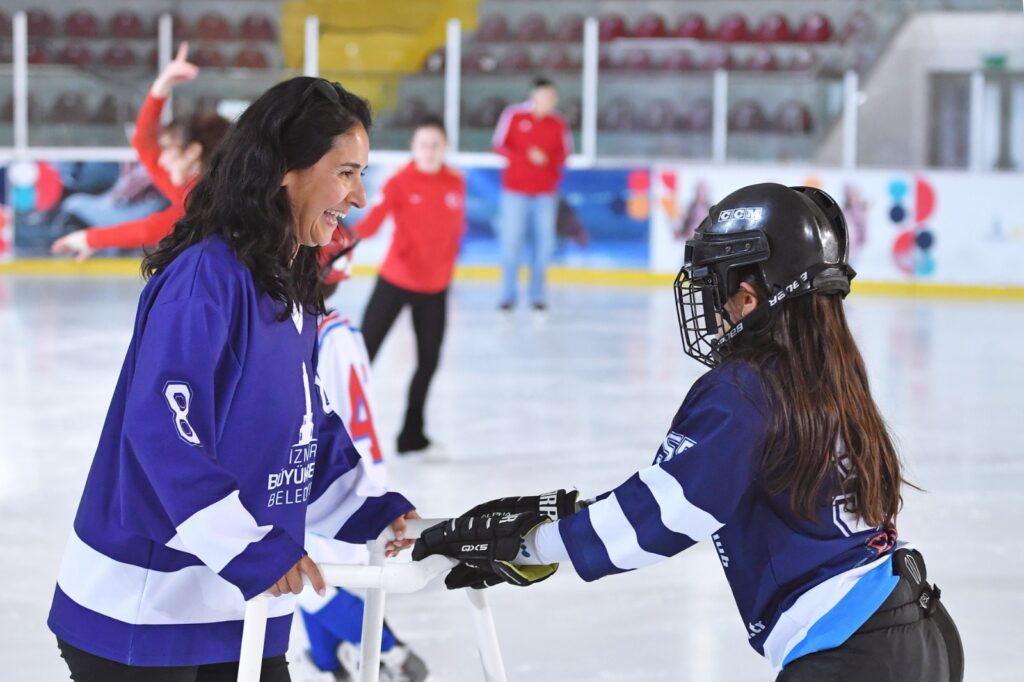 İzmir Büyükşehir Belediyesi’nin Bornova Âşık Veysel Rekreasyon Alanı içinde yer alan Olimpik Buz Sporları Salonu, bir Anneler Günü etkinliğine ev sahipliği yaptı. Ulusal ve uluslararası turnuvalara ev sahipliği yapan tesiste kurs alan öğrenciler ve milli sporcular anneleriyle birlikte pistte keyifli anlar yaşadı. İzmir Büyükşehir Belediyesi Gençlik ve Spor Hizmetleri Dairesi Başkanlığı’nın anne ve çocuklar için hazırladığı seansta, velilere tişört ve madalya da verildi.
