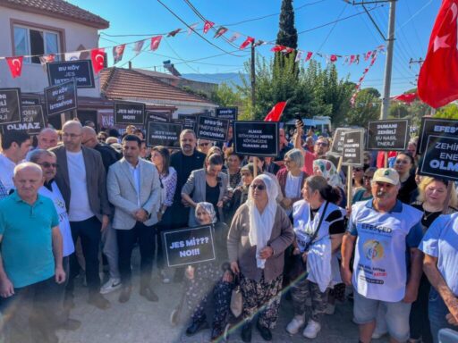 geleceğimize sahip çıkmak için Efes Selçuk’tayız. Köylerimizden ve köylülerimizden ellerinizi çekin”