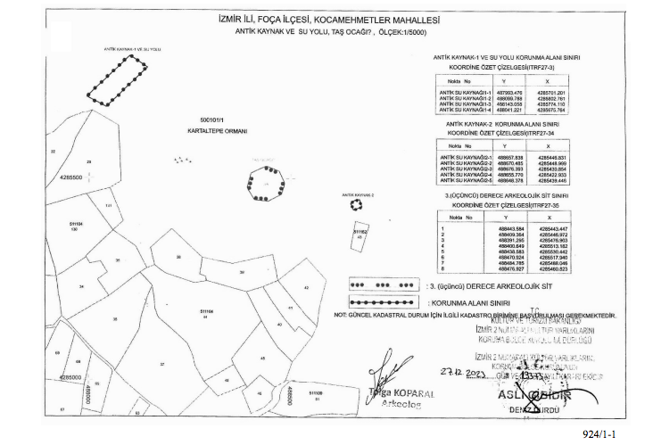 Öte yandan 2 adet Antik su kaynağı ve suyolunu da koruma altına alındı.