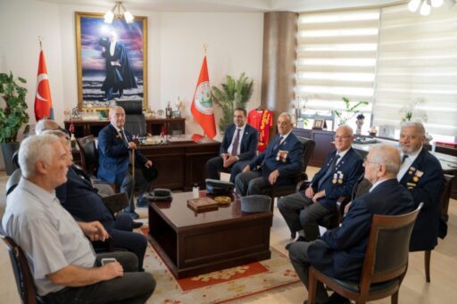 yaşayan gazilerle birlikte Balçova Belediye Başkanı Onur Yiğit’i ziyaret