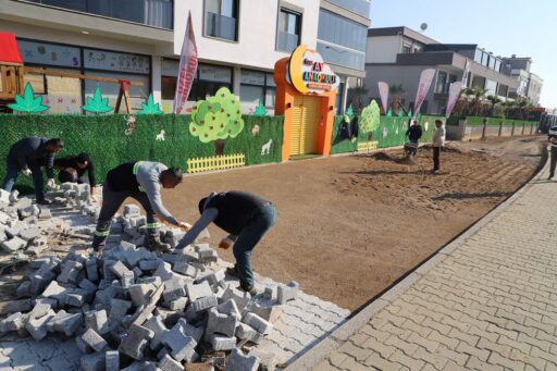 Menderes Belediyesi Fen İşleri Müdürlüğü ekipleri Barbaros Mahallesi’nde kilit parke döşeme