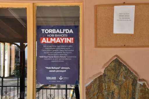 köy kahvelerine “Torbalı’da hobi bahçesi almayın” yazılı afişler astırarak, vatandaşları bu tür