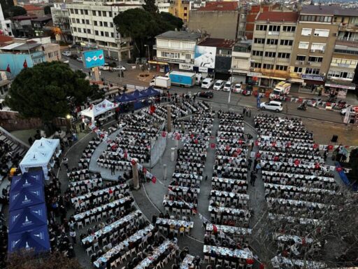Bergama’da da masaları dolaşarak tek tek yurttaşlarla selamlaşan Başkan, çocukları sevdi, ilçe sakinleri ile fotoğraf çektirdi. Edilen duaların ardından, oruçlar açıldı.