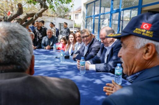 Değirmendere Köyü’nde İzmir Büyükşehir Belediye Başkanı Dr. Cemil Tugay’a, köylüler tarafından yapılan keşkek ikram edildi. Ataköy ve Çamönü köylerini de ziyaret ederek köy sakinleri ile sohbet eden Başkan Tugay, kente en iyi hizmeti vermek için yola çıktıklarını belirterek zor bir yılı geride bıraktıklarını aktardı. Yaşanan zorlukların bir kısmının ülkenin sorunlarından kaynaklı olduğuna değinen Tugay, “Yurttaşlarımıza daha fazla destek olmak için ne yapmamız gerekiyorsa, yapmaya hazırız. Elimizdeki imkanları zorlayarak çalışmalarımızı sürdürüyoruz. Göstermelik işler değil, kalıcı ve sağlıklı işleri, hızlı şekilde yapmak istiyoruz. Göz boyayan insanlar olmadığımıza emin olun. Millet adına görev yapıyoruz. Size uzak olmak istemiyoruz. Bu tür ziyaretleri gerçekten ihtiyaçları yerinde görmek için yapıyoruz. Bana ihtiyacınız olduğunda ve beni çağırdığınızda, gelirim. Yeter ki ‘Cemil Başkan sana ihtiyacımız var’ deyin. İnsanlarımızın her sözü, her dileği bizim için önemli. Görev süremiz ne kadar olursa olsun, önemli olan insanların gönlünde bıraktığımız izler. Sizleri sevdiğim ve saygı duyduğum için bu göreve geldim. Elimden gelenin en iyisini yapacağım. İzmir güzel bir kent. Hep birlikte çaba göstererek, sahip çıkarak, birbirimize yol göstererek, çok daha güzel günlerin yaşanmasını sağlayacağız” dedi.