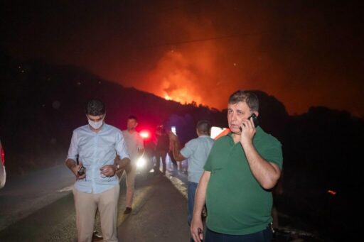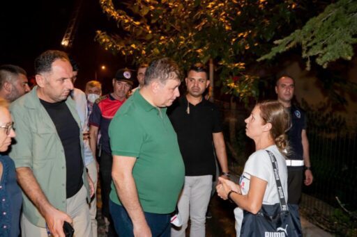 Karşıyaka’da orman alanlarında yangının devam ettiğini söyleyen Başkan Tugay, “Rüzgar hızlanıyor bir anda farklı noktalardan yangın başlıyor. Güvenlik amaçlı Örnekköy’deki TOKİ evleri boşaltıldı. Tamamen söndürdük dediğimiz anda başka bir yerde yeni bir yangın başlıyor. Rüzgarla birlikte büyüyor. Yerleşim yerlerini tehdit eder hale geliyor. Yurttaşlarımızı güvenli yerlere taşıdık. Evleri ve iş yeri yanan insanlarımız var” dedi.