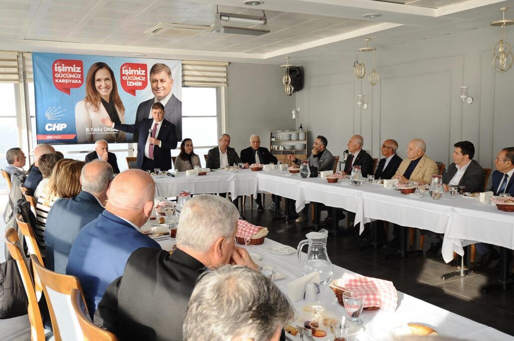 Restoran’da düzenlenen toplantıda muhtarların yanı sıra CHP Karşıyaka