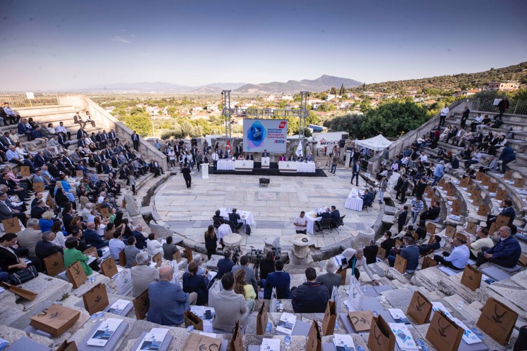 Torbalı Metropolis Antik Kenti’nde düzenlenen meclis toplantısını köylü kadınlar da büyük bir ilgiyle izledi. Toplantının sonunda İzmir Büyükşehir Belediye Başkanı Dr. Cemil Tugay ve meclis üyeleri hatıra fotoğrafı çekildi.