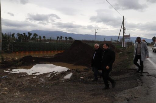 Belediye Başkan Yardımcıları M. Cumhur Şener ve Metin Kıral ile İZSU personelinin de yer aldığı yağış altındaki ziyarette taşkın sularından etkilenen bahçelerdeki son durum, tahliye çalışmaları ve taşkına yol açtığı düşünülen sorunlarla ilgili yerinde inceleme yapıldı. Başkan Turan, kalıcı çözüm için ilgili tüm kurumlar nezdinde sürecin takipçisi olacaklarını belirterek üreticilere geçmiş olsun dileklerini iletti.