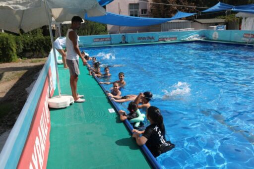 Bayraklı Belediyesi, sosyal sorumluluk projeleriyle çocukların yüzlerini güldürmeye devam ediyor. Bu kapsamda hayatlarında hiç havuza girmemiş 6-12 yaş arasındaki 20 çocuk, havuzla tanıştı. Spor İşleri Müdürlüğü ve Sosyal Yardım İşleri Müdürlüğü iş birliğiyle düzenlenen etkinlikte, uzman eğitmenler eşliğinde suya ilk adımlarını atan çocukların heyecanı görülmeye değerdi. Eğitmenler, çocukların suya olan korkularını yenmelerine yardımcı olurken, aynı zamanda yüzme tekniklerini de öğretti. Çeşitli oyunlarla eğlenceli anlar yaşayan çocuklar, suyun keyfini doyasıya çıkardı. Etkinlik sonunda çocuklara yiyecekler ikram edildi.