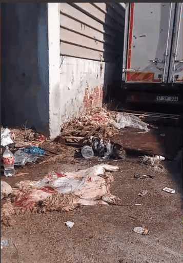 - Toprak zemin üzerinde hijyenik olmayan koşullarda kesim yapılıyor.
