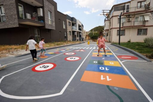 Çocuk oyun sokaklarında, seksekten zıplama halkalarına, yerden yüksekten dans oyunlarına kadar birçok geleneksel oyun, zemin çizimleriyle sokağa işleniyor. Sokağın kullanıcıları olan çocukların yaş grupları dikkate alınarak hazırlanan oyun alanları, aynı zamanda çocukların kendi oyunlarını da kurgulayabilecekleri esneklikte bırakılıyor. Böylece her sokak, yaşayan, dönüşen, çocuklarla birlikte şekillenen bir oyun alanına dönüşüyor.