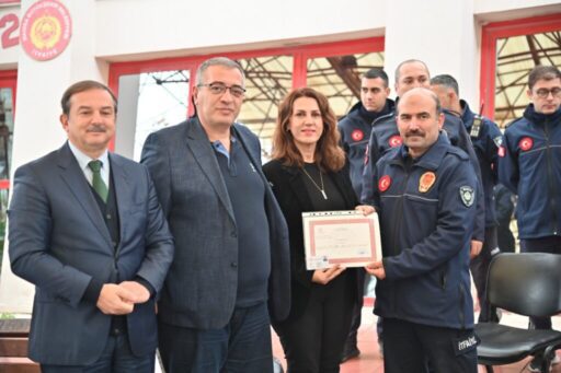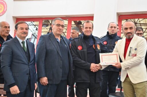 Manisa Büyükşehir Belediyesi, düzenlediği Temel İlk Yardım Eğitimleri ile itfaiyecilerinin acil durumlara müdahale yetkinliğini artırmaya devam ediyor. Eğitimleri başarıyla tamamlayan itfaiyecilere sertifikaları düzenlenen törenle teslim edildi. Manisa Büyükşehir Belediyesi Genel Sekreter Yardımcısı Oğuz Murat Pınar, İl Sağlık Müdürlüğü’nün 1-7 Aralık Acil Sağlık Hizmetleri Haftasını kutlayarak plaket taktim etti.