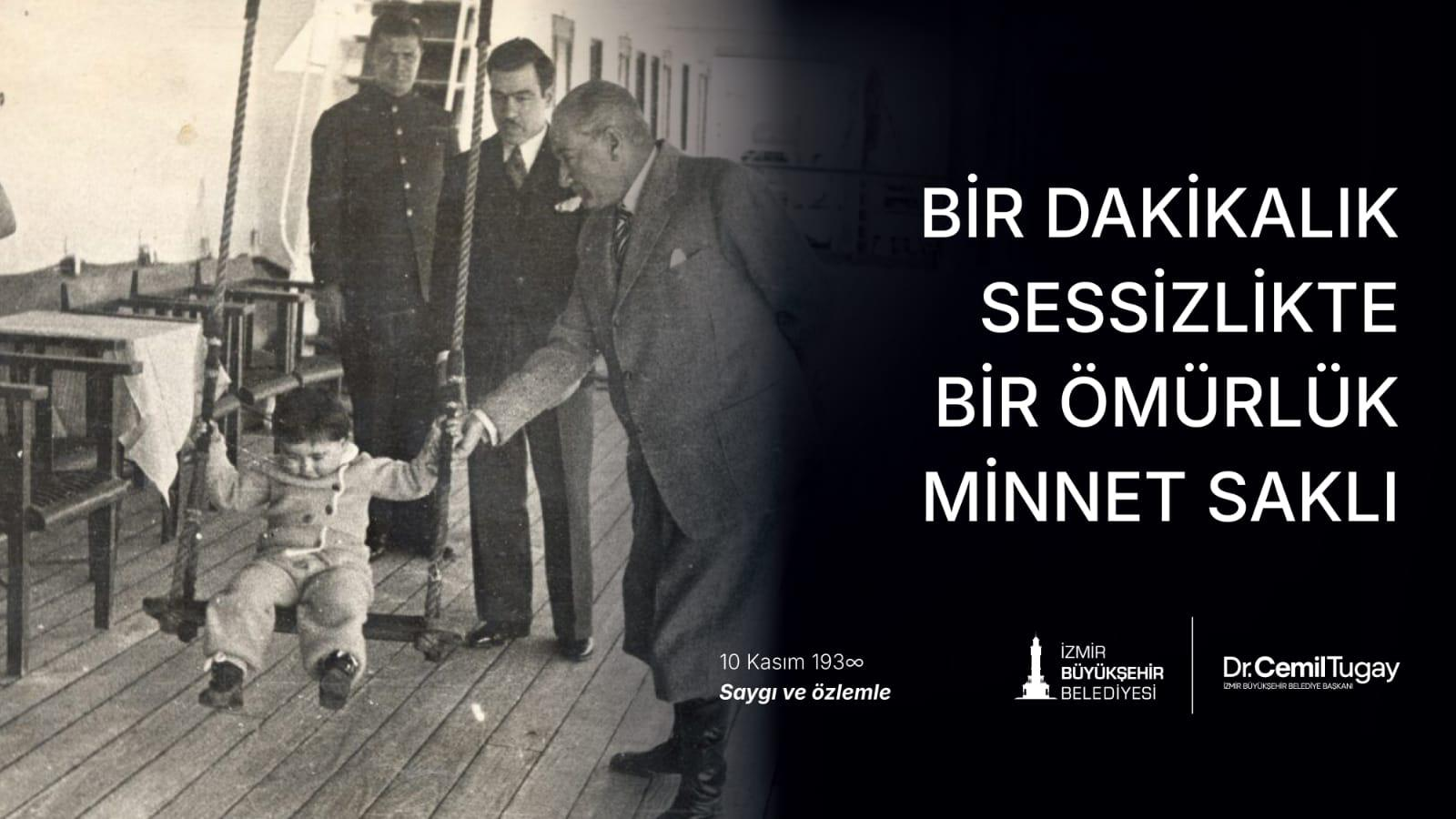 İzmir Büyükşehir Belediye Başkanı Dr. Cemil Tugay, Ulu Önder Gazi Mustafa Kemal Atatürk’ün ebediyete intikalinin 87. yıl dönümü nedeniyle bir mesaj yayımladı. Başkan Tugay, mesajında İzmir’in Atatürk’ün kalbindeki özel yerine dikkat çekerek, O’nun mirasına sahip çıkma sözü verdi.