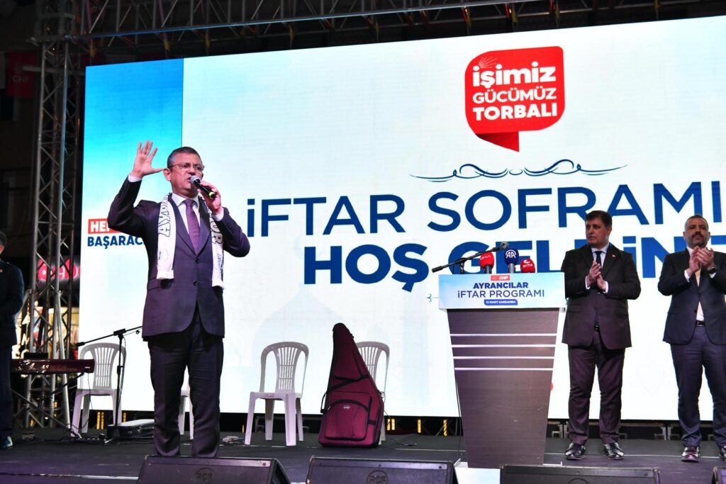 CHP Genel Başkanı Özgür Özel, CHP’nin İzmir Büyükşehir Belediye Başkan Adayı Dr. Cemil Tugay ile sabah saatlerinde başlattığı İzmir turunu, Torbalı’da yurttaşların iftar sofrasına konuk olarak tamamladı. Özel ve Tugay, Ayrancılar Pazar yerinde binlerce kişinin katılımı ile oruç açtı. İftarın ardından konuşma yapan Özgür Özel, Ayrancılar’a hizmet sözü verildiğini ancak bunların tutulmadığını söyledi. Ayrancı’ların geri bırakıldığını belirten Özel, “Övünç Demir başkan kararlı, Torbalı’ya pozitif ayrımcılık yapacak. Cemil Tugay da aynısını yapacak, hep birlikte çalışıp Ayrancılar’da ne eksikse yerine getirip size sahip çıkacağız” dedi.