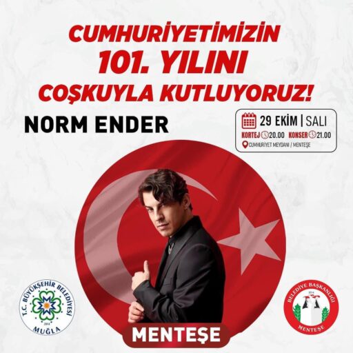 Seydikemer Belediye Meydanı’nda Ender Balkır sahne alacak. 28 Ekim