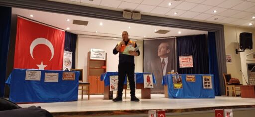 Kamuoyunda “Japon Deprem Uzmanı” olarak bilinen Yoshinori Moriwaki’nin konuşmasıyla dikkat çeken etkinlikte, İzmir Afet Bilinci, Çevre ve İklim Farkındalığı Derneği (İZAFED) tarafından sahnelenen “HAZIR MIYIZ?” adlı tiyatro oyunu ve dernek başkanı Servet Ertaş’ın interaktif söyleşisi büyük ilgi gördü. İZ-AFED Derneği Tiyatral Anlatım Ekibinin afetlere hazırlıkla ilgili doğru sanılan yanlışları mizahi açıdan ele alan “HAZIR MIYIZ? adlı kısa tiyatro oyunu salonu dolduran izleyicilerden büyük alkış topladı.