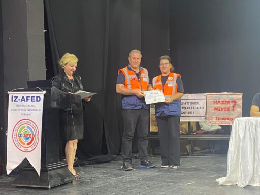 Depremin dinamiğini ve kentimizin depremselliğini yaptığı bilimsel sunum ile anlatan İZ-AFED Derneği üyesi ve JMO İzmir Şubenin 15. Dönem Şube Başkanı Yüksek Jeoloji Mühendisi Bora Sonuvar’dan sonra söz alan İzmir Kent Konseyi Afetler Çalışma Grubu Başkanı ve İZ-AFED Yönetim Kurulu Üyesi Yüksek İnşaat Mühendisi Mutlu Burak Paksoy, deprem gerçeğine karşı yapısal ve yapısal olmayan riskleri azaltmaya mercek tutan sunumunu yaptı. NARKUT Başkanı ve Narlıdere Narlı Mahallesi Muhtarı olan Neval Emir ise ilçe ölçeğinde afetlere müdahale ve arama kurtarmanın önemini yakın zamanlarda orman yangınları ile anlatarak etkinliğe katkı sundu.