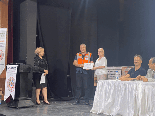 Konunun sosyo-kültürel boyutunu (yani insana hitap eden yönünü) ise İZ-AFED Tiyatral Anlatım Ekibi, sahneledikleri “HAZIR MIYIZ?” adlı kısa tiyatro oyunu ile bilimsellik ve mizah dengesi ekseninde sundular. Oyundan sonra izleyicilerle kısa bir söyleşi yapan İZ-AFED Yönetim Kurulu Başkanı ve tiyatro oyun yazarı Servet Ertaş, söyleşide oyunda geçen kavramları seyirci ile interaktif konuşarak açıkladı. Başkan Ertaş; “Derneğimiz teknik, bilimsel, sosyal ve sanatsal alanlarda çok yönlü projeler geliştirerek afetlere karşı toplumsal ve kentsel dirençlilik için çalışıyor” dedi. Her depremin yıl dönümünde tazelenen acıların bir daha yaşanmaması için neler yapıldığının önemine vurgu yapan İzmir Afet Bilinci, Çevre ve İklim Farkındalığı Derneği (İZ-AFED)Başkanı Servet Ertaş, “Başka depremlere hazır mıyız? İşte asıl mesele budur. Çünkü bir ülkenin afetlere karşı farkındalığı, bilinci, direnci, hazırlığı, dayanıklılığı veya kırılganlığı, bir sonraki seferde yaşayacaklarının da göstergesi ve sebebidir” diye konuştu. Afetlere karşı dirençli bir toplum ve kent yapısı oluşturmak amacıyla, çok disiplinli ve çok yönlü çalışmalar yürüttüklerini anlatan Başkan Ertaş, her şeyin farkındalıkla yani farkında olmak ile başladığından hareketle, toplumsal farkındalığa çok önem verdiklerini söyledi. Başkan Ertaş, Konak Belediyesi ile işbirliği protokolü yaptıklarını bu işbirliği kapsamında mahalle ve ilçe ölçeğinde afet yönetim planları yapacak teknik ekip oluşturduklarını, mühendisiğin her branşından uzmanlarıyla İZ-AFED’in hem teknik ve bilimsel, hem de sosyo-kültürel kapasitesi çok yüksek bir dernek olduğunu, farklı yaş ve sosyal gruplara hitap eden çok yönlü çalışmalar yürüttüklerini söyledi.