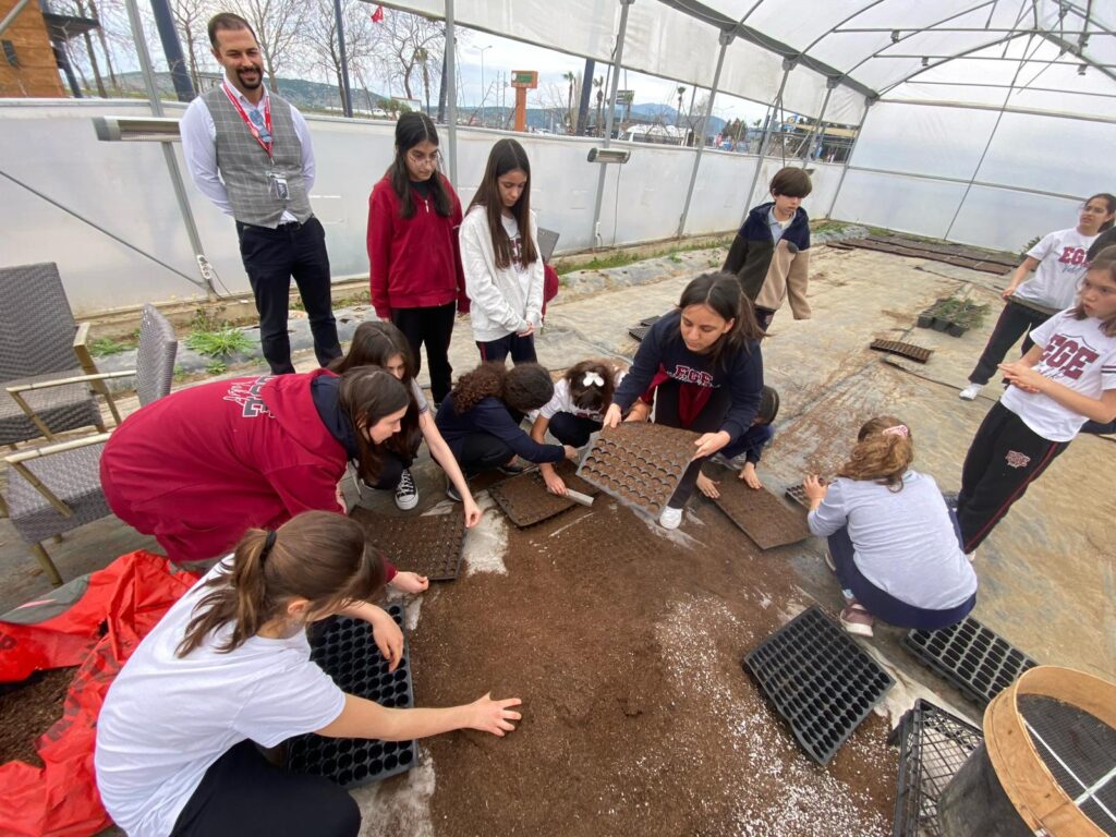 Efes Tarlası Yaşam Köyü’ne gelen ve yaz için topan patlıcan tohumlarını eken Misket Anaokulu öğrencileri, ayrıca geçtiğimiz kış ekilen turpların hasadını da yapmanın heyecanını yaşadılar. Ege Eğitim Vakfı Okulları Özel Gaziemir Ortaokulu öğrencileri de köklendirilen kekikleri saksıya alarak, yazlık sebzelerin tohumlarını ektiler. Öğrenciler ayrıca Efes Tarlası Yaşam Köyü’nde yer alan Köy Enstitüleri Anı Odası’nı ziyaret ederek, Cumhuriyet tarihinin en büyük eğitim seferberliği hakkında bilgi edindiler.