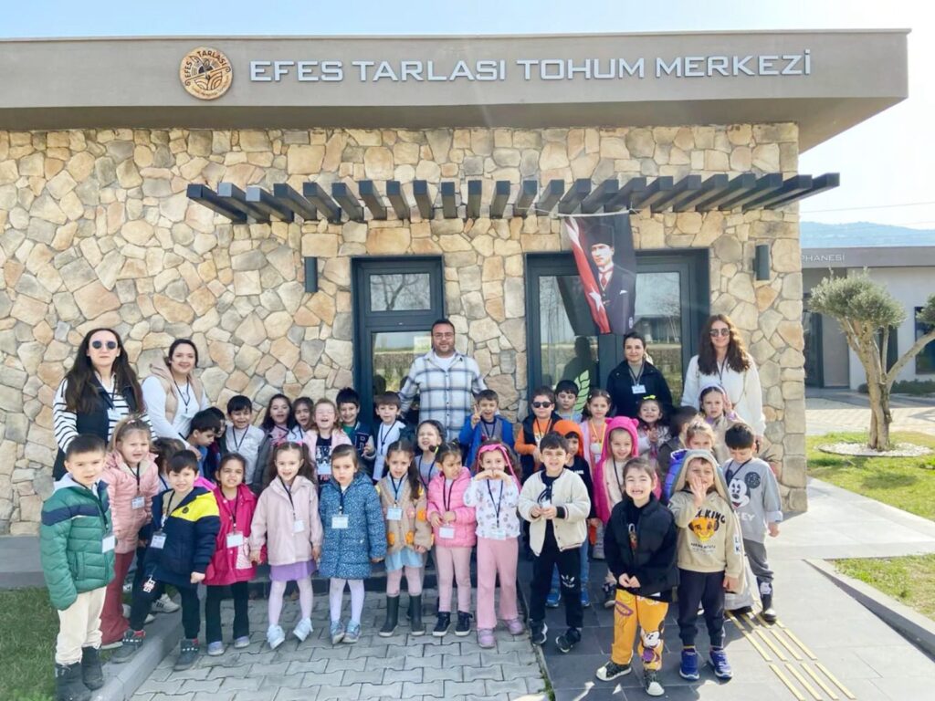 Çocuklara sürdürülebilir tarımın, atalık tohumun önemini uygulamalı olarak öğretmeyi amaçlayan “Tohumdan Sofraya, Sofradan Tohuma” Projesi için Efes Tarlası Yaşam Köyü’ne gelen öğrenciler, burada toprağa dokunarak çalışmaları uygulamalı olarak izlediler.