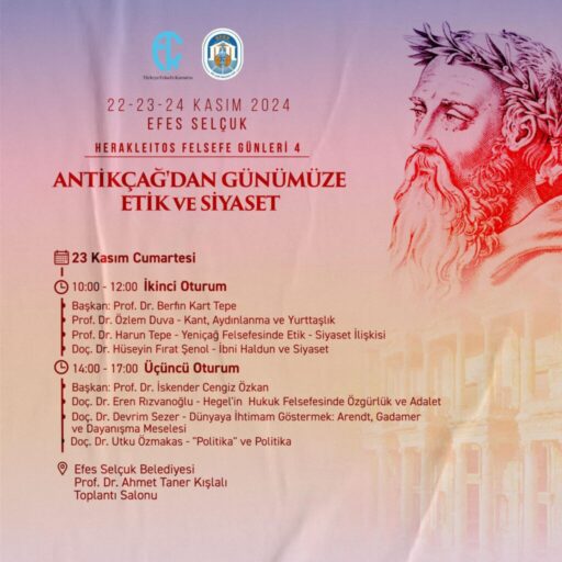 Dördüncü Herakleitos Felsefe Günleri ile ayrıntılı bilgi Efes Selçuk Belediyesi ve Selçuk Efes Kent Belleği sosyal medya hesaplarında yer alıyor.