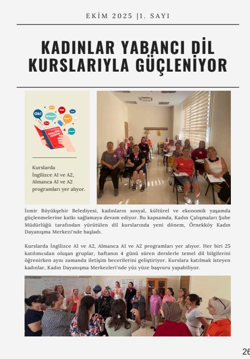 Belediyeden yapılan açıklamada, Ekim ayında düzenlenen yabancı dil kursları, dijital farkındalık eğitimleri ve sağlık seminerleri gibi etkinliklerin İzmirlilerden büyük ilgi gördüğü belirtildi. Yeni başlatılan bülten hizmetiyle, bu etkinliklere ilişkin farkındalığın ve katılımın daha da artırılarak toplumsal bilinç ve dayanışmanın güçlendirilmesi hedefleniyor.