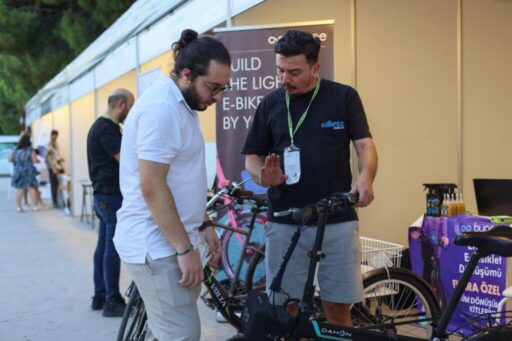 Byqee.tech İzmir temsilcisi Muzaffer Turan, “Ürünümüz, bisikletler için elektrikli dönüşüm kiti. Genç iki girişimci tarafından kuruldu. Mevcut bisikletlerinizi elektrikliye çeviren bir sistem. Takılan bir düzenek ile normal bisikletler elektrikli hale dönüştürülüyor. 3 yıl önce hayata geçen bu girişim modeli İzmir’in bisiklet kullanımı için uygun bir kent olması sebebiyle burada çok tercih ediliyor” diye konuştu.
