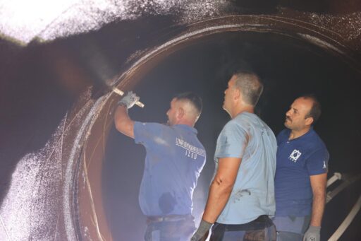 “Güzelhisar (Petkim) Barajı ile Sarıkız ve Göksu Kuyuları’ndan şehrimize su taşıyan 2,2 metre çapındaki ana su isale hattında dün gece büyük bir patlak meydana gelmiştir. Çiğli 9 Eylül Mahallesi’nde yerin 3 metre altında gerçekleşen bu patlağa, ekiplerimiz kısa sürede müdahale etmiştir. Öncelikle ana isale hattındaki su boşaltılma işlemi başlatılmış ve eş zamanlı olarak vatandaşlarımıza SMS ve sosyal medya hesapları aracılığıyla bilgilendirme yapılmıştır. Su boşaltma işleminin ardından ekiplerimiz, en yakın baca noktasından girerek, yer altından 470 metre ilerleyerek arızaya müdahale etmiştir. Arızalanan hattaki boru çapının büyüklüğü ve teknik özelliklerine uygun olarak boru içinden ve dışından başlatılan onarım işlemleri gece boyunca devam etmiş ve çalışma tamamlanmıştır. 42 km uzunluğunda ve 2,2 metre çapındaki isale hattına verilecek suyun uygun seviyeye gelmesinin ardından, bu gece saat 22.00’de vatandaşlarımıza suyu ulaştırmayı hedeflemekteyiz.”