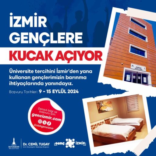 İzmir Büyükşehir Belediyesi’nin üniversite eğitimi için kente gelen öğrencilerin barınma sorununu çözmek üzere başlattığı “İzmir Gençlere Kucak Açıyor” projesine başvuru tarihleri açıklandı. Öğrenciler www.gencizmir.com üzerinden 9-15 Eylül tarihleri arasında başvuru yapabilecek.