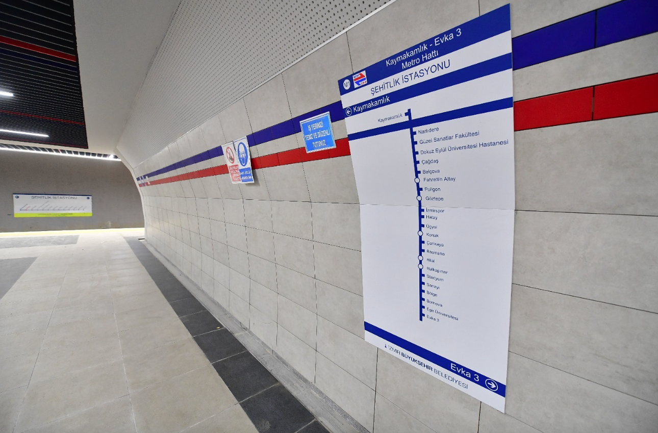 Fahrettin Altay-Narlıdere Metro hattında sırasıyla; Balçova, Çağdaş, Dokuz Eylül Üniversitesi Hastanesi, Güzel Sanatlar Fakültesi, Narlıdere, Şehitlik ve Kaymakamlık istasyonları yer alıyor. Günlük yolcu sayısının ortalama 170 bin olması öngörülüyor.