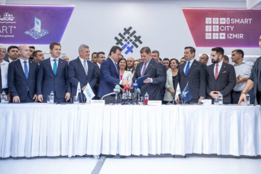 İzmir Büyükşehir Belediye Başkanı Dr. Cemil Tugay, onur konuğu ilin İstanbul, temanın “Teknoloji” olarak belirlendiği İzmir Enternasyonal Fuarı’nın (İEF) 93’üncü açılışına katılan İstanbul Büyükşehir Belediye Başkanı Ekrem İmamoğlu’nu ağırladı. Buluşma kapsamında İzmir Büyükşehir Belediyesi’nin iştiraki İzmir İnovasyon ve Teknoloji AŞ (İzmir Teknoloji) ile İstanbul Büyükşehir Belediyesi’nin iştiraki İstanbul Bilişim ve Akıllı Kent Teknolojileri AŞ (İSBAK) arasında iş birliği protokolü imzalandı. Büyükşehir Belediye Başkanları Tugay ve İmamoğlu, karşılıklı know-how (teknik bilgi birikimi) aktarımıyla tarafların elindeki mevcut teknolojik ürünlerin yaygınlaşmasına olanak sağlayacak protokol için Kültürpark’taki İzmir Teknoloji standında düzenlenen imza töreninde önemli mesajlar verdi.