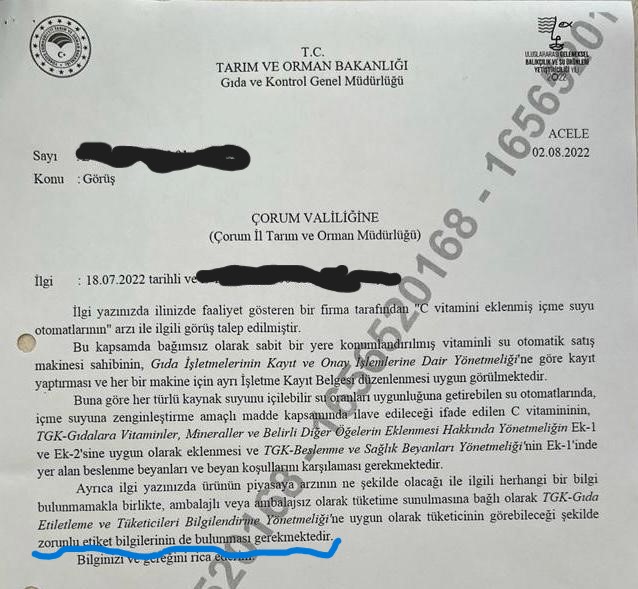 Son olarak satılan suyun içine vitamin katkısı eklendiği iddiası nedeniyle yetkinin Tarım Bakanlığı üzerinde kalmasından dolayı, Bakanlık uzun zaman sonra harekete geçti. Ve suların tahlilleri yapılmaya başlandı.