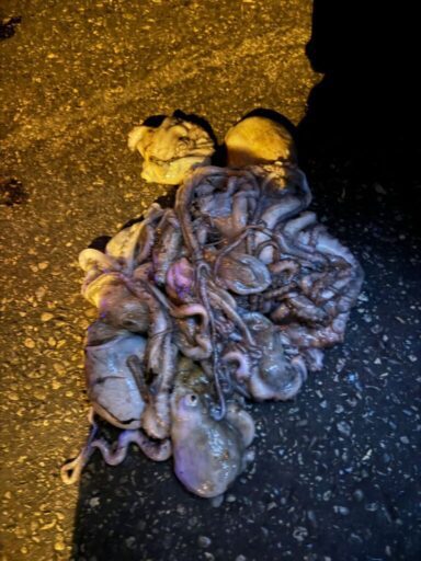 Denetim sonucunda yasak dönemde avlandığı tespit edilen toplam 11 kg ahtapot, 3 kg deniz böceği