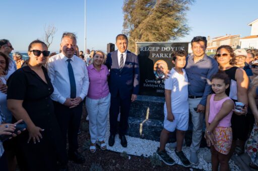 Merhum Recep Doyuk’un eşi Neriman Doyuk duygu dolu bir konuşma yaparken, “Sevgili eşimin cenaze töreninde hem İzmir Büyükşehir Belediye Başkanı Sayın Cemil Tugay hem de Urla Belediye Başkanı Selçuk Balkan vardı. Törende iki başkanım da ellerimi tutup ‘siz nerede isterseniz biz muhtarımızın adını orada yaşatacağız’ dediler. Alev alev yanan yüreğime su serptiler. Ben her gün yürüyüş yaptığım bu yolda onun adını görmek için bu parka adının verilmesini istedim. Teşekkür ediyorum” dedi.