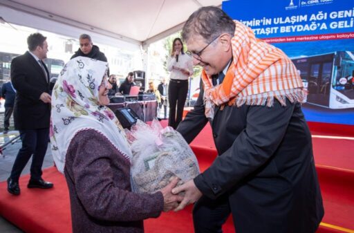 İzmir Büyükşehir Belediyesi’nin İZTAŞIT projesinde 7’nci durak Beydağ oldu. Beydağ’ın; İzmir Otogarı, Ödemiş ve Kiraz’la direkt bağlantısını sağlayacak 697, 796 ve 801 numaralı hatlar, Büyükşehir Belediye Başkanı Dr. Cemil Tugay’ın katıldığı törenle hizmete alındı. Otobüsle ilçede ilk turu atan Başkan Tugay, “Yapılması gereken bütün hizmetleri kimseye el açmadan, kimsenin önünde eğilmeden yapmaya devam edeceğiz. Biz bu topraklarda yetiştik, biz bu toprakların evladıyız ve hakkını sonuna kadar savunacağız” diye konuştu.