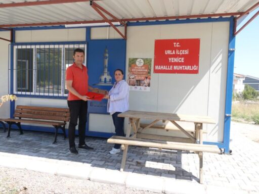 Seçmenin tercihini kadın adaydan yana kullandığı Çeşme Boyalık ve Urla Yenice mahallelerinde de prefabrik ofisler muhtarlara teslim edildi. Yenice Mahallesi Muhtarı Aylin Çetinbaş’ı yeni ofisinde ziyaret eden İzmir Büyükşehir Belediyesi Yarımada Şube Müdürü Çağlayan Karaca, Çetinbaş’a talebi üzerine Türk Bayrağı da hediye etti.