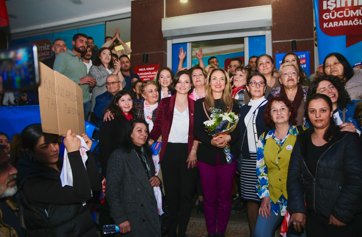 CHP Kadın Kolları Genel Başkanı Aylin Nazlıaka, İzmir’de ilk seçim ziyaretini Karabağlar’da gerçekleştirdi. Vatandaşlar tarafından büyük bir coşku ile karşılanan Kınay ve Nazlıaka, burada seçim süreci ve 31 Mart sonrası yürütülecek çalışmalar hakkında bilgi verdi. Karabağlar’dan başlayan Türkiye İttifakı hakkında konuşan Kınay, “Karabağlar’da her yerde kadınların eli emeği var.  Karabağlar’da kadınların emeğini gücünü görünür kılacak, sesimizi birlikte büyüteceğiz. Yaşamın yarısı olan kadınlar Karabağlar’da seçimi kazanan, sesimizi büyüten olacaklar. Karabağlar için biz varız!” ifadelerini kaydetti.