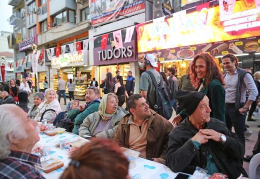 Karşıyaka Çarşısı’nda kurulan 4 bin kişilik sofrada bir araya gelen vatandaşlar birlikte iftar yaptı. Belediye Başkanı Yıldız Ünsal, “Hep beraber daha güzel, daha umut dolu günler göreceğimize inanıyor; Kadir Gecesi’nin tüm halkımıza huzur ve bereket getirmesini diliyorum” dedi.
