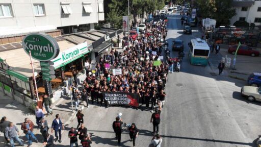 Yürüyüşe katılanlar, ellerinde “İstanbul Sözleşmesi’nden Vazgeçmeyeceğiz”, “Asla Yalnız Değilsin”, “Erkek Devlet Şiddetine Son” yazılı dövizler taşıdı.