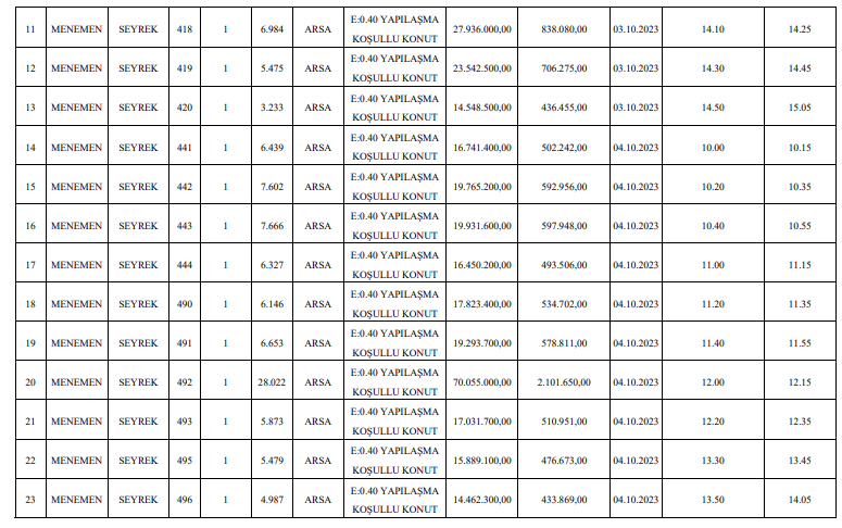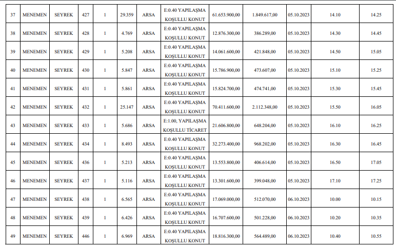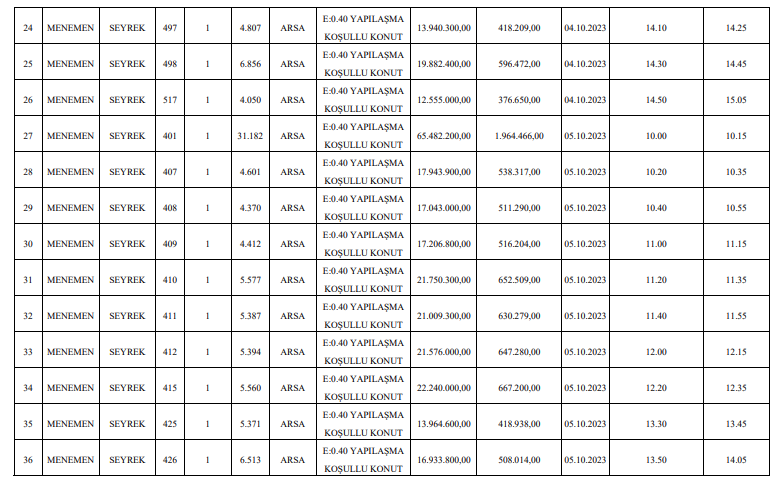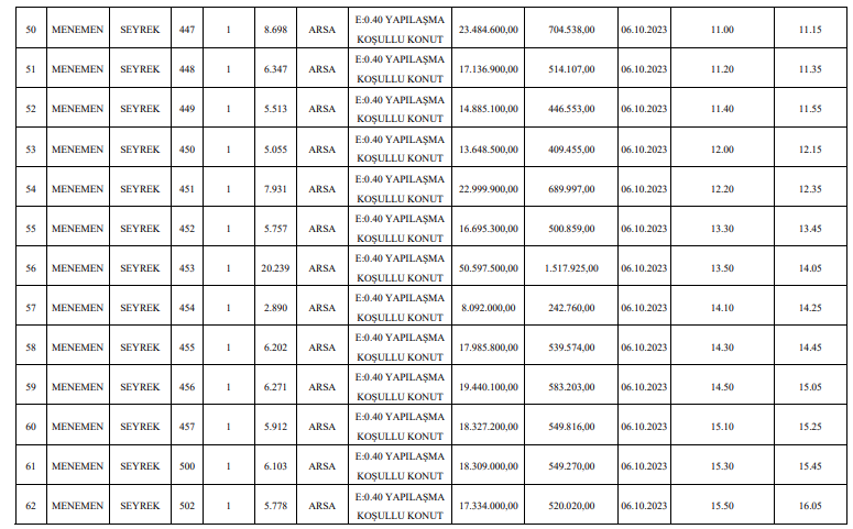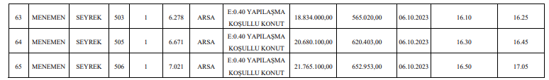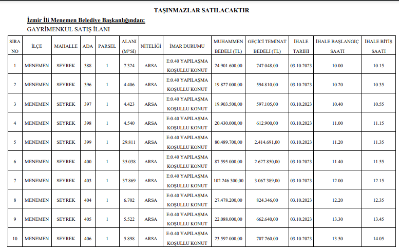 Resmi Gazete’de yer alan ilana göre, AK Partili Menemen Belediyesi, Seyrek’te bulunan 65 taşınmazı vitrine çıkardı.