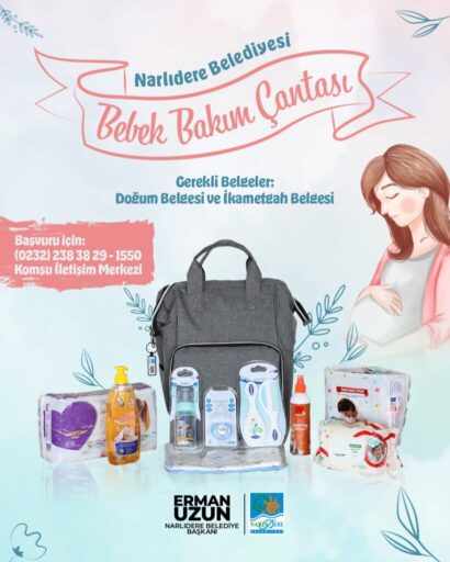 Narlıdere Belediyesi, çocuk sevinci yaşayan anne babaların mutluluğuna ortak olmak için Anne-Bebek Bakım Çantası hediye etmeye başladı. Narlıdere Belediyesi’nin, Başkan Erman Uzun’un sosyal belediyecilik anlayışı ile başlattığı proje kapsamında, ihtiyaç sahibi aile ailelere özel olarak hazırlanmış ‘Anne Bebek Çantası’ ulaştırılıyor. Yenidoğan çantasının içinde ise biberon, bebek bezi, bebek şampuanı, battaniye, emzik, bebek yağı, bebek bakım seti, bebek bakım örtüsü ve ıslık mendil yer alıyor.