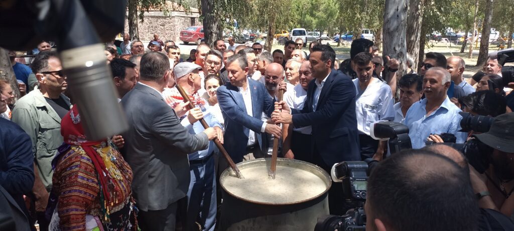 Cumhuriyet halk partisi genel başkanı Özgür Özel İzmir ziyaretleri kapsamında bugün Sasalı da güne Keşkek döverek başladı, devamında Bornova da Kiraz festivalini ziyaret ederek İzmir programını bitirdi
