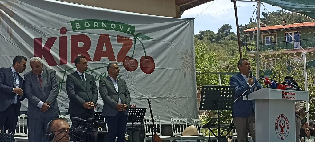 Bornova beşyol kiraz festivaline geçen Özel burada da bir konuşma yaptı
