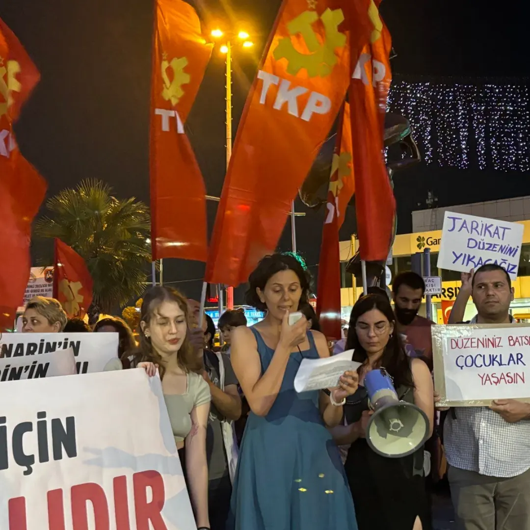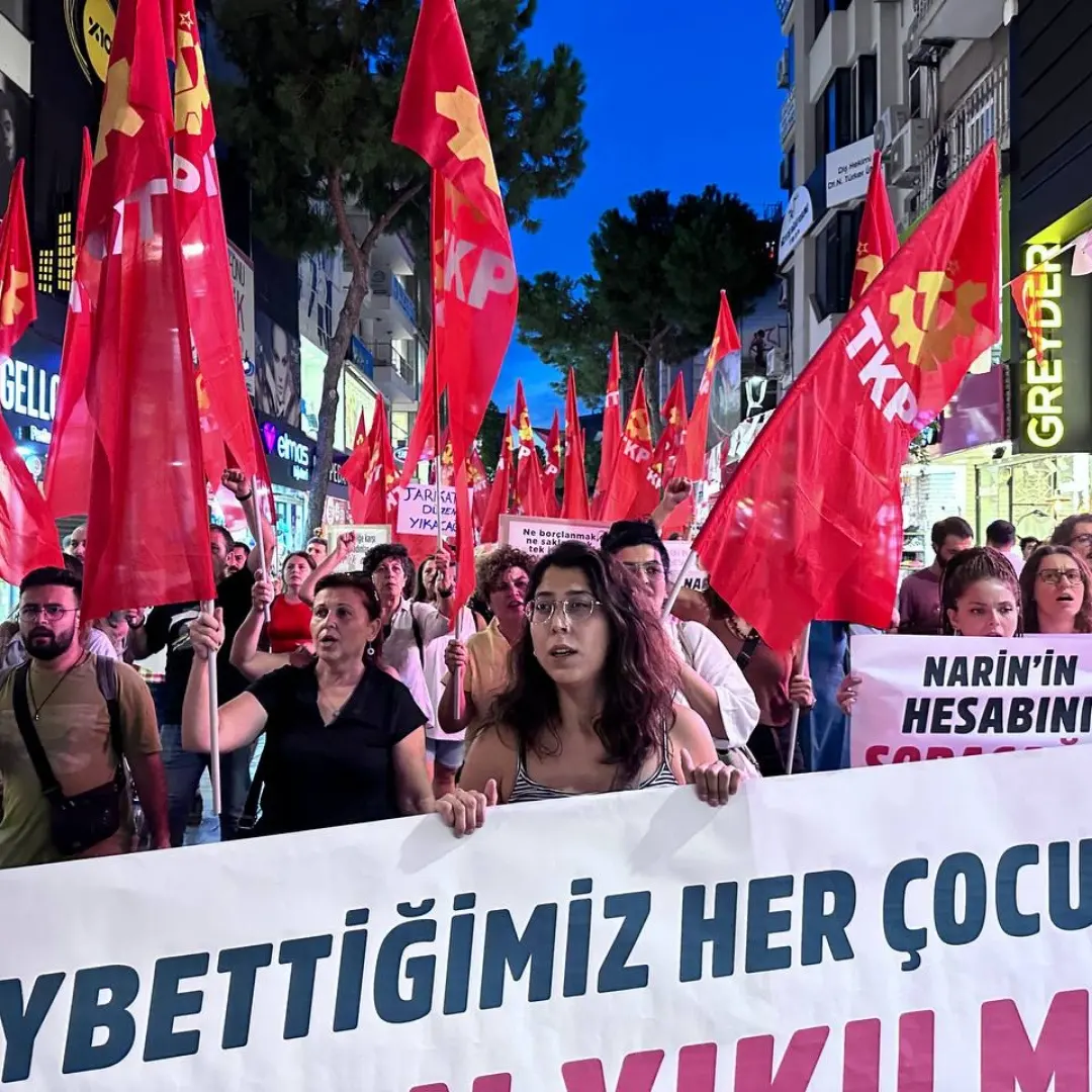 Diyarbakır’ın Bağlar ilçesinde kaybolan ve 19 gündür aranan 8 yaşındaki Narin Güran’ın cansız bedeni dün itibariyle jandarma ekipleri tarafından bulundu. Türkiye Komünist Partisi İzmir İl Örgütü, 9 Eylül Pazartesi günü, Karşıyaka İZBAN’dan Karşıyaka Çarşı girişine bir yürüyüş gerçekleştirerek çarşı girişinde bir konuşma yaptı.