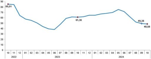 Buna göre, TÜFE’deki değişim 2024 yılı Ekim ayında bir önceki aya göre yüzde 2,88, bir önceki yılın Aralık ayına göre yüzde 39,77, bir önceki yılın aynı ayına göre yüzde 48,58 ve on iki aylık ortalamalara göre yüzde 62,02 olarak gerçekleşti.