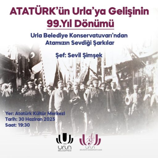 Şef Sevil Şimşek yönetiminde sahne alacak koro, Ulu Önder’in sevdiği ezgileri Urlalılarla buluşturacak. Urla Belediye Başkanı Selçuk Balkan, Atatürk’ün Urla’ya gelişinin sadece tarihsel bir anı değil, aynı zamanda ilçenin Cumhuriyet değerlerine bağlılığının bir göstergesi olduğunu vurguladı. “99 yıl önce Urla’yı onurlandıran o kutlu ziyaretin izini bugün hala taşıyoruz. Bu anlamlı günü, birlik içinde ve Ata’mıza yakışır şekilde kutlamaktan gurur duyuyoruz” ifadelerini kullandı.